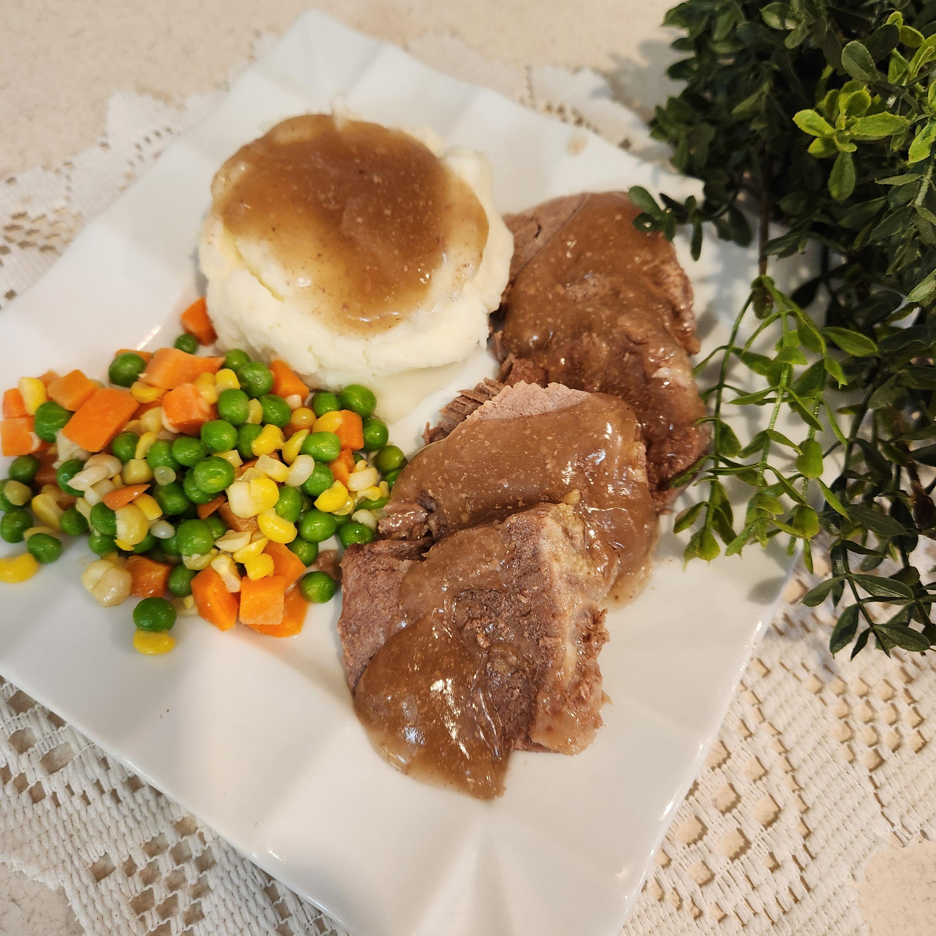 Deliciously tender ! Roasting it slow & long makes a juicy , flavorful roast!